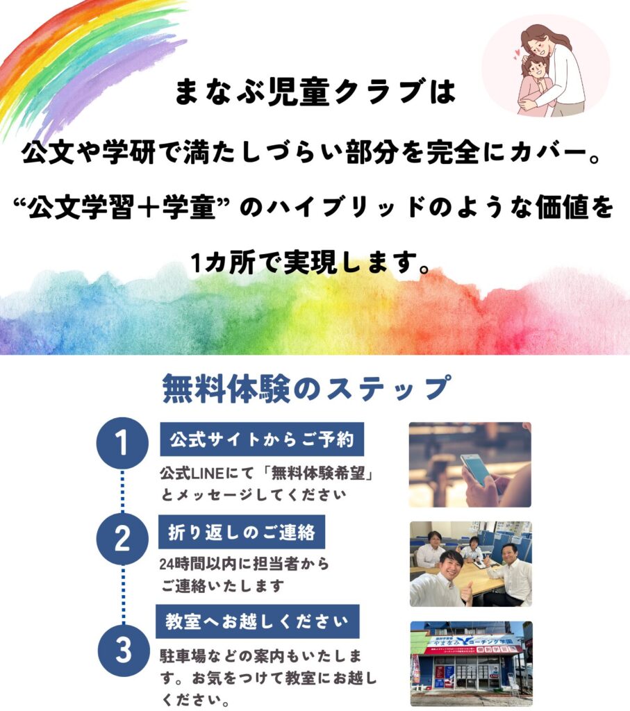 まなぶ児童クラブの特徴を一通りご体験いただき、安心して入塾するかどうかご判断いただけます。 「悩みをもう少し相談して決めたい」「興味あるけど、うちの子どもに合うかな?」「どんなことやるんだろう?」という方も、お気軽にお申し込み、ご相談ください!!